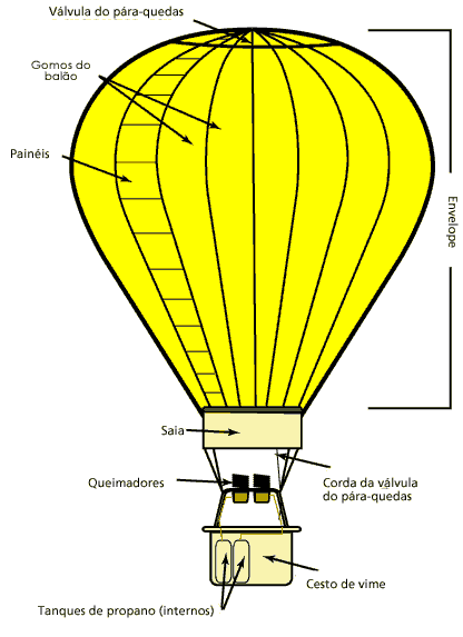 É um aerostato que consiste num grande compartimento denominado envelope, que sustem o ar quente no seu interior. Por baixo do envelope, suspenso, encontra-se o cesto (em voos de longa distância ou de grande altitude, o cesto pode ser substituído por uma cápsula), que serve para carregar tripulantes e diversos materiais. Entre ambos, é instalado um ou mais aparelhos frequentemente referidos como "queimadores", que fazem uso de botijas de gás propano, aquecendo o gás acima dos 100 graus centígrados, para produzir uma fonte de calor ou uma chama, que enche o envelope com uma quantidade de gás mais quente e leve que o ar frio no exterior, o que permite ao aparelho ficar mais leve que o ar.
