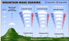 Ascendente de Onda - Ascendente usada em voo à vela. Um vento forte em condições especiais, soprando contra uma encosta, gera um movimento ondulatório resultando em correntes ascendentes que podem atingir uma razão de subida de um metro por segundo até altitudes de mais de 15000 metros.